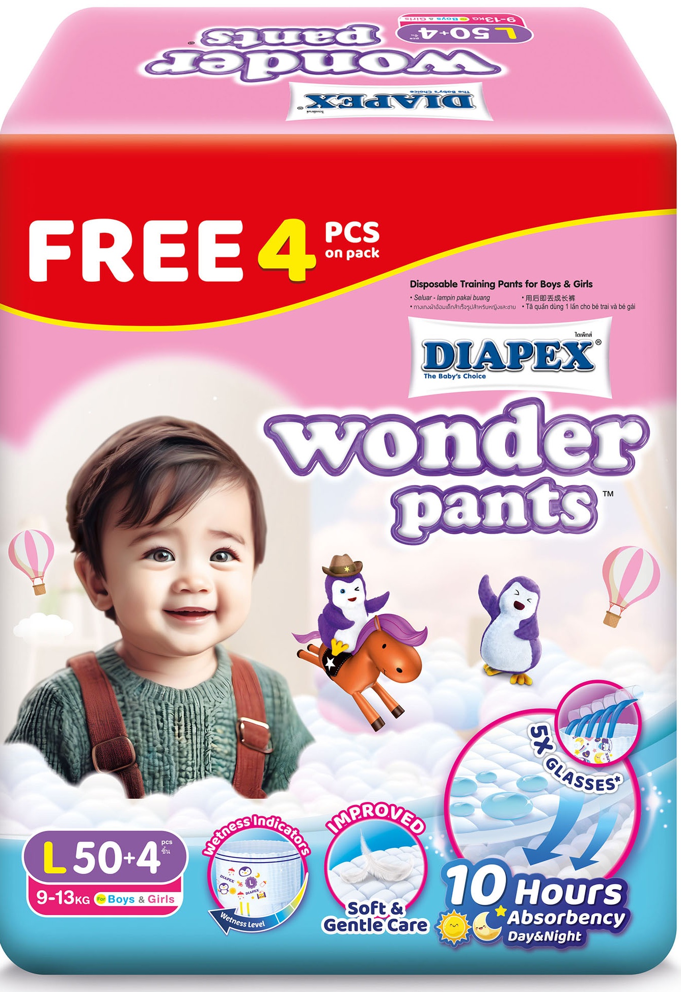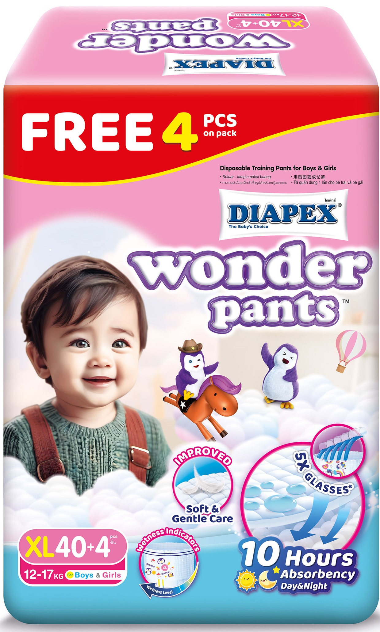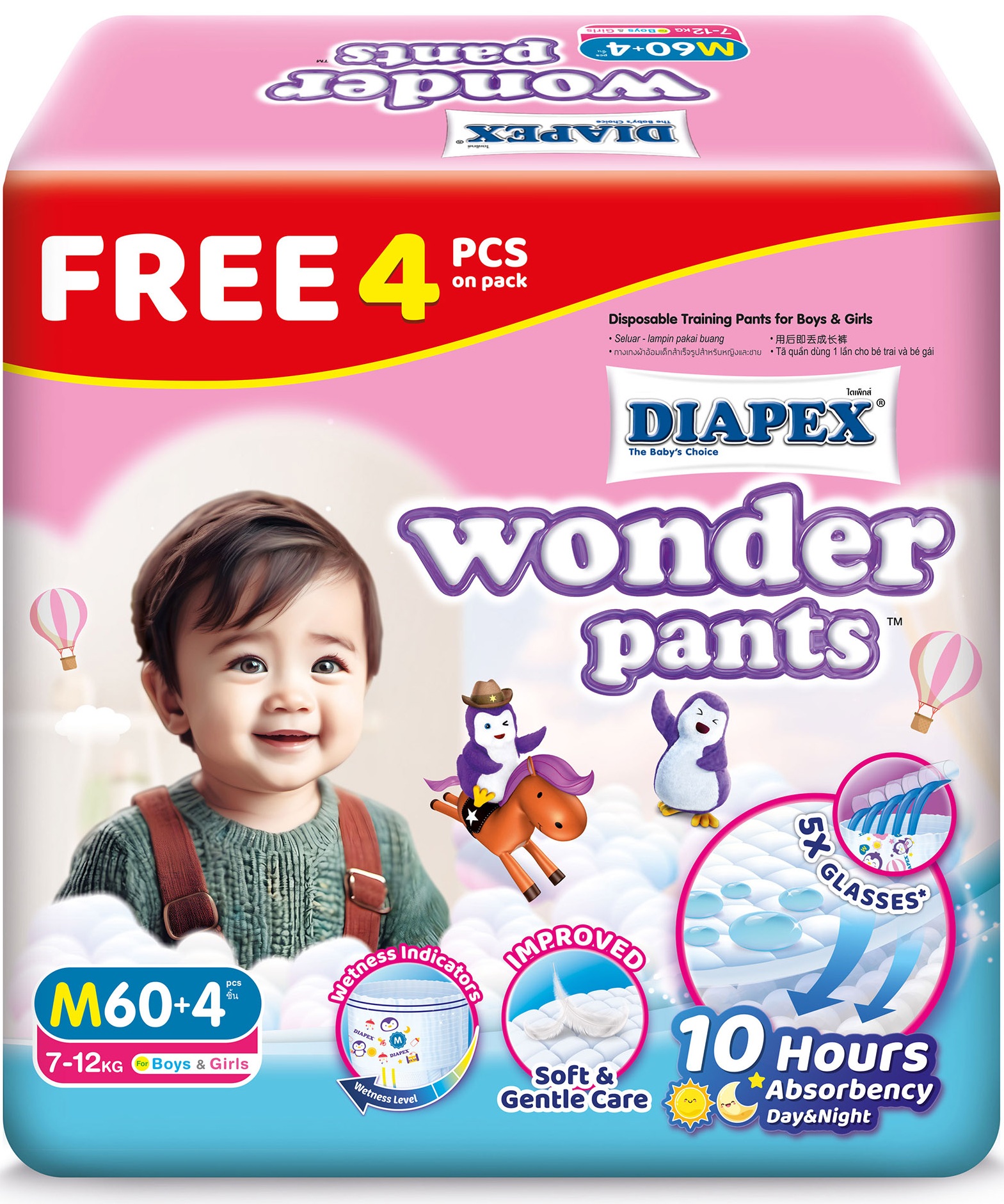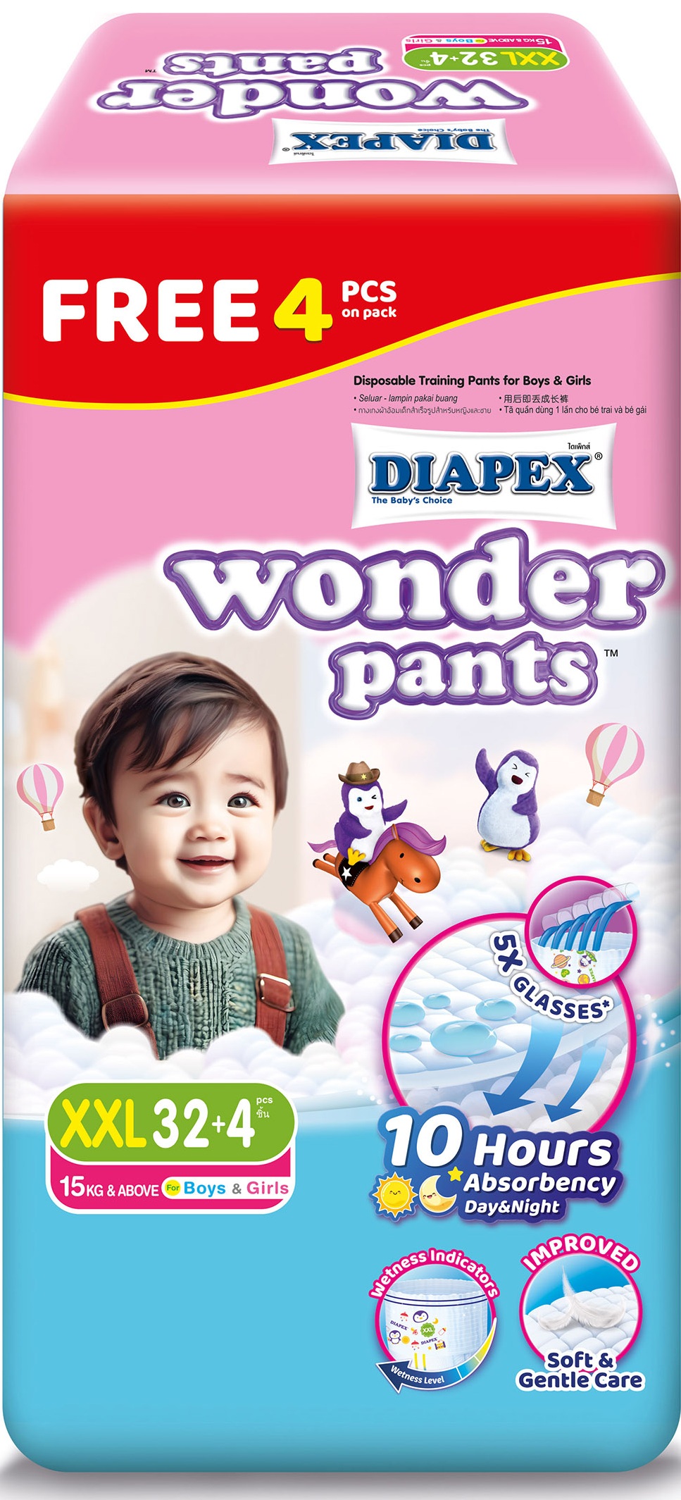 Easy to wear and specially designed for the active baby and busy working mothers. DIAPEX Wonder Pants are feature with Wonder Grips which will provide 360 degree all round waistband for Firmer & Softer Fits to your love one.